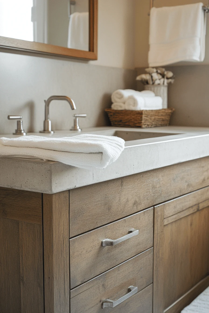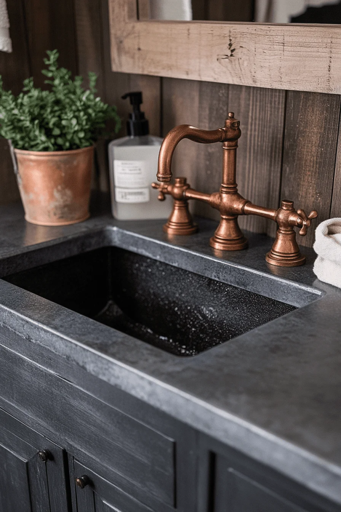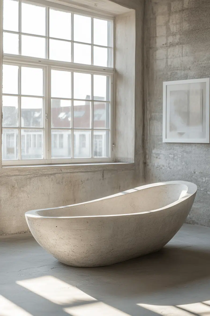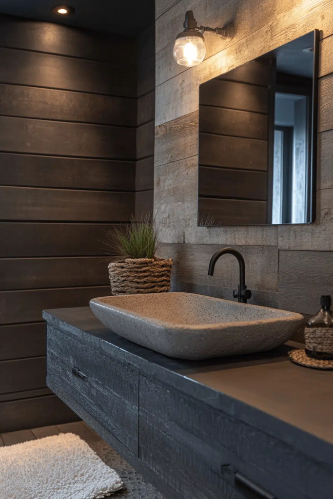 Cement basin sinks are a popular choice for industrial bathroom ideas, offering a sturdy and minimalist look. Their raw texture and solid construction echo the industrial theme’s focus on utilitarian design. These sinks pair well with simple metal faucets and exposed plumbing, creating a cohesive and functional centerpiece. Cement basins are perfect for those who prefer a clean, architectural look in their bathroom fixtures.