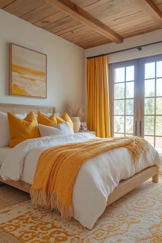 Sahara Dreams combines golden yellows and sand tones to recreate the warmth and expansiveness of the desert in a boho bedroom. This palette is great for those looking to create a bright and airy space. Textures like woven rugs and sheer fabrics can add to the desert vibe, while earthy accessories like terracotta pots or a collection of dried grasses provide contrast. Use this palette to inspire creativity and warmth in your space.