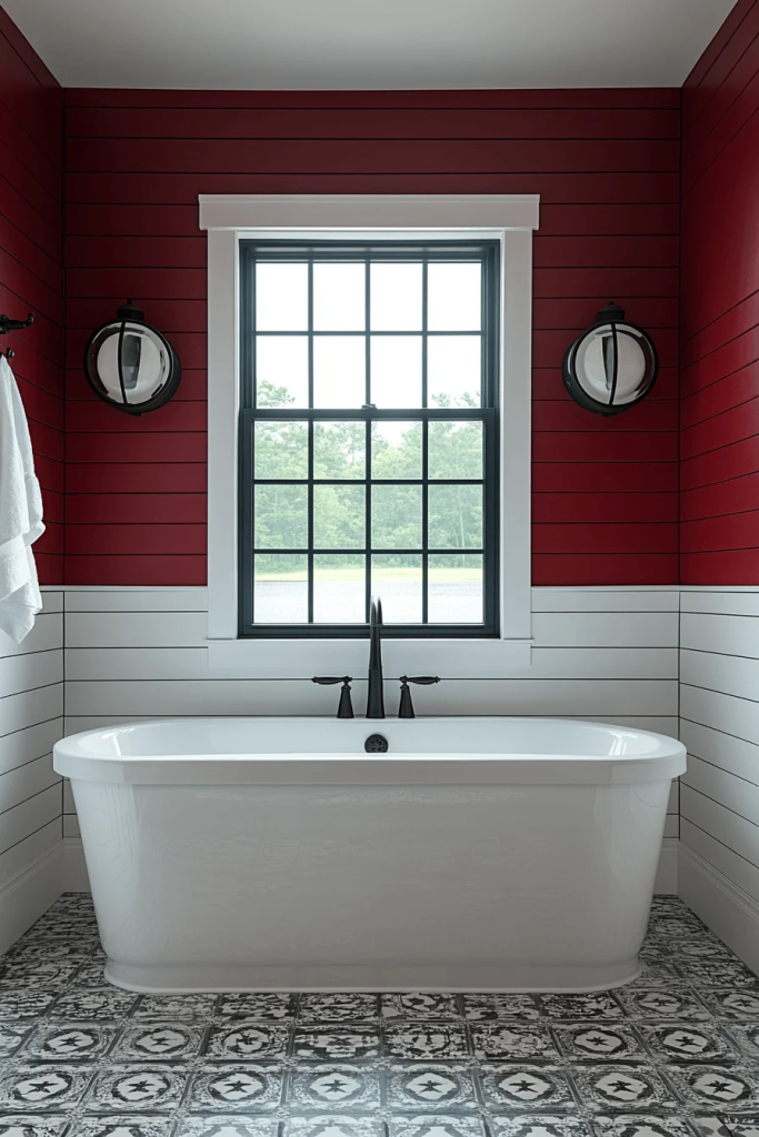 Lighthouse Luxe is inspired by the iconic structure of lighthouses. Use of vertical lines and circular windows (or mirrors) can mimic this architectural style. A palette of red, white, and navy blue keeps the theme authentic yet stylish. Nautical lamps or a ship’s wheel decor can add a fun, thematic touch.