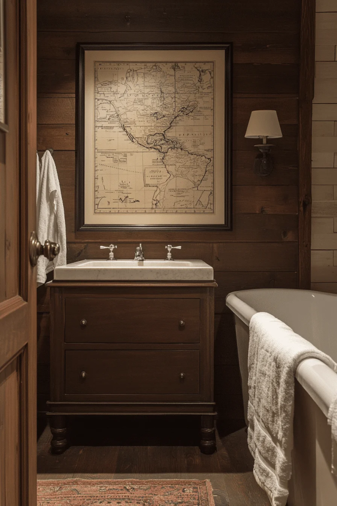 Seafarer’s Space incorporates authentic maritime elements like maps, compasses, and globes. These can be used as artwork or incorporated into the design of tiles and textiles. A dark wood vanity or brass fixtures can add a touch of old-world sailor charm. The overall feel is adventurous and nostalgic.