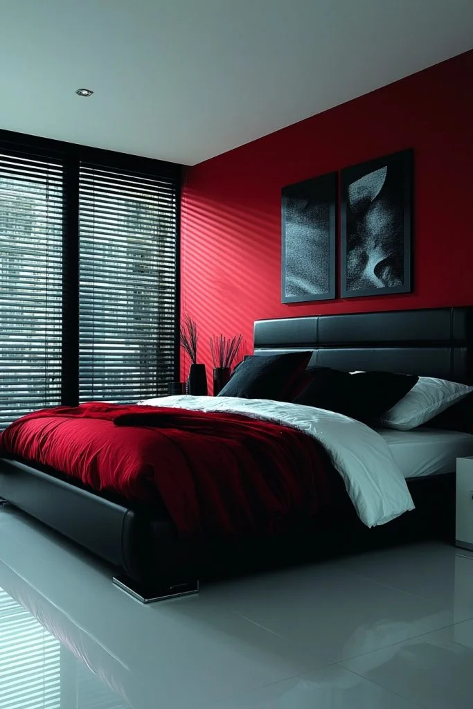 Bold Monochrome with Color features a strong monochromatic base, such as all black or all white, with strategically placed vibrant colors that create striking contrasts. This design allows for a dramatic yet minimalist look, where the bright colors pop against the monochrome backdrop. The use of bold color in a few key pieces like a bedspread or a piece of art can make a powerful statement without cluttering the room. This style is perfect for those who appreciate the clarity of monochrome but also enjoy the energy of bold colors.