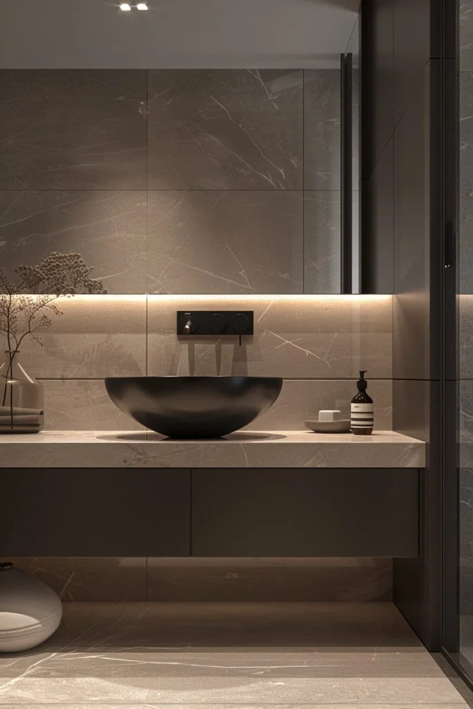Utilizing basement or lower-level spaces, this design crafts a quiet, cave-like retreat. Because these spaces often lack natural light, the design focuses on soft, layered artificial lighting, soundproofing, and luxurious touches like a sauna or steam room. It turns a potentially dark area into a cozy, private escape. This design is perfect for those looking for ultimate privacy, quiet, and tranquility in their bathroom experience.