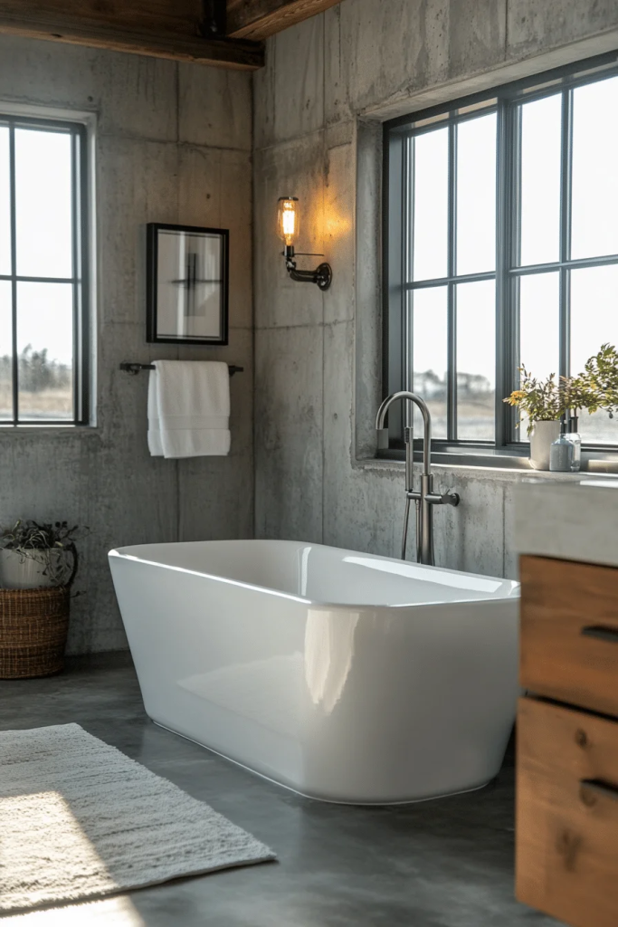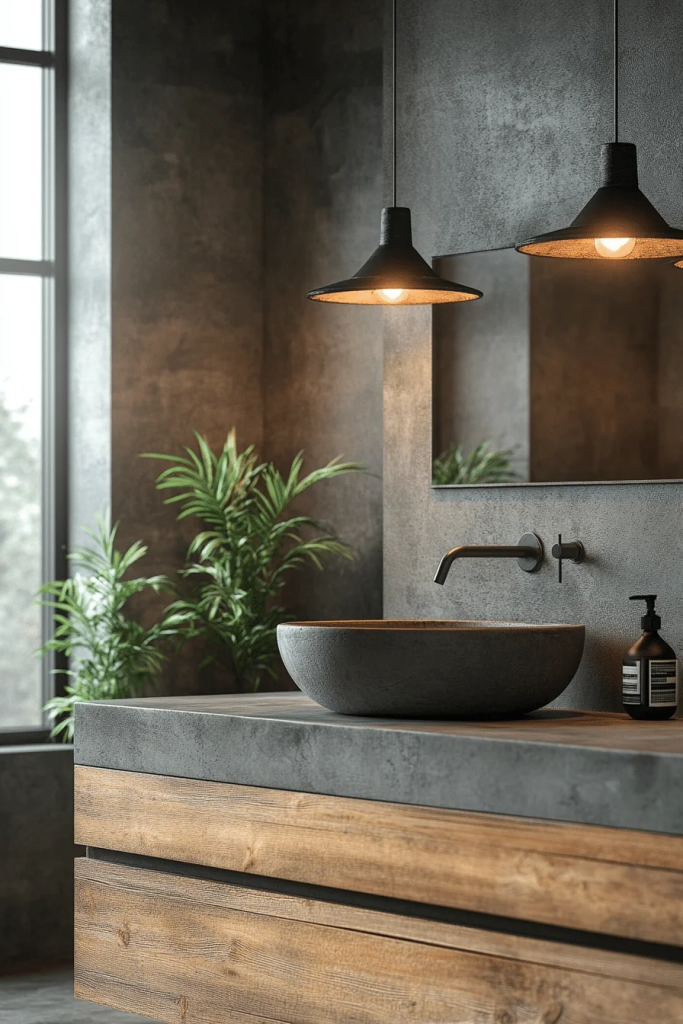 7 Chic Industrial Bathroom with Concrete ElementsÂ