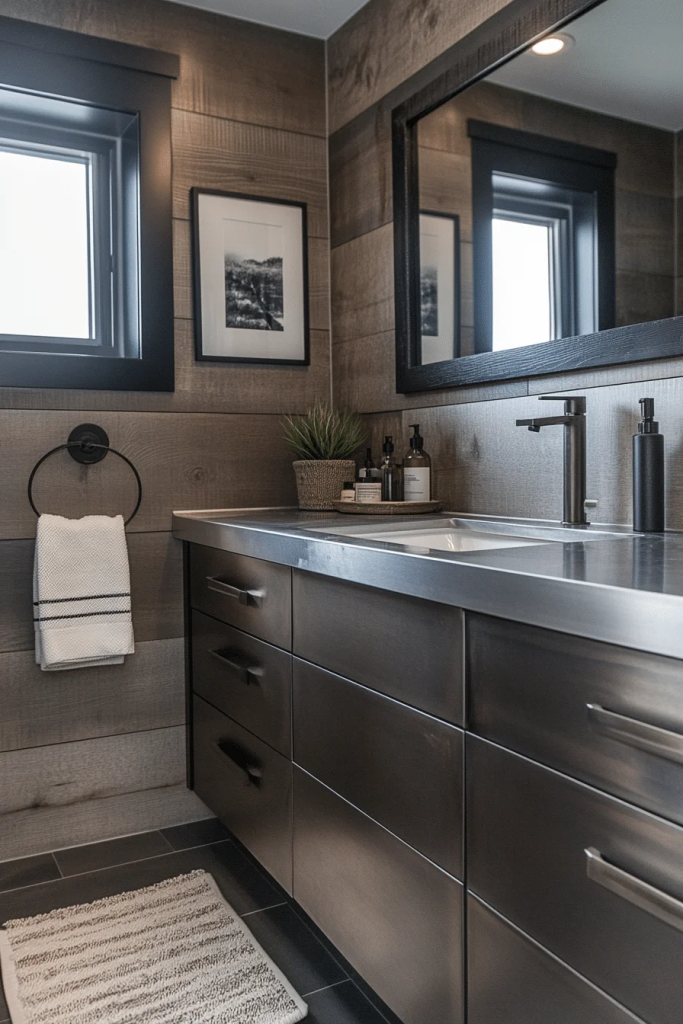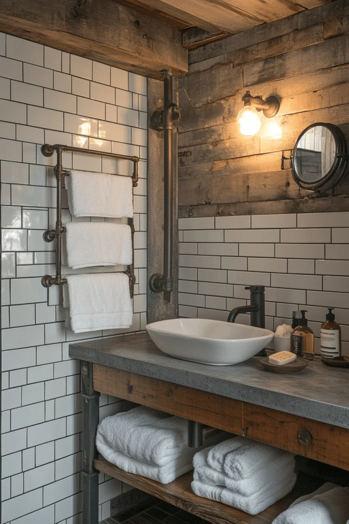 6 Rustic Industrial Bathroom with Metal AccentsÂ