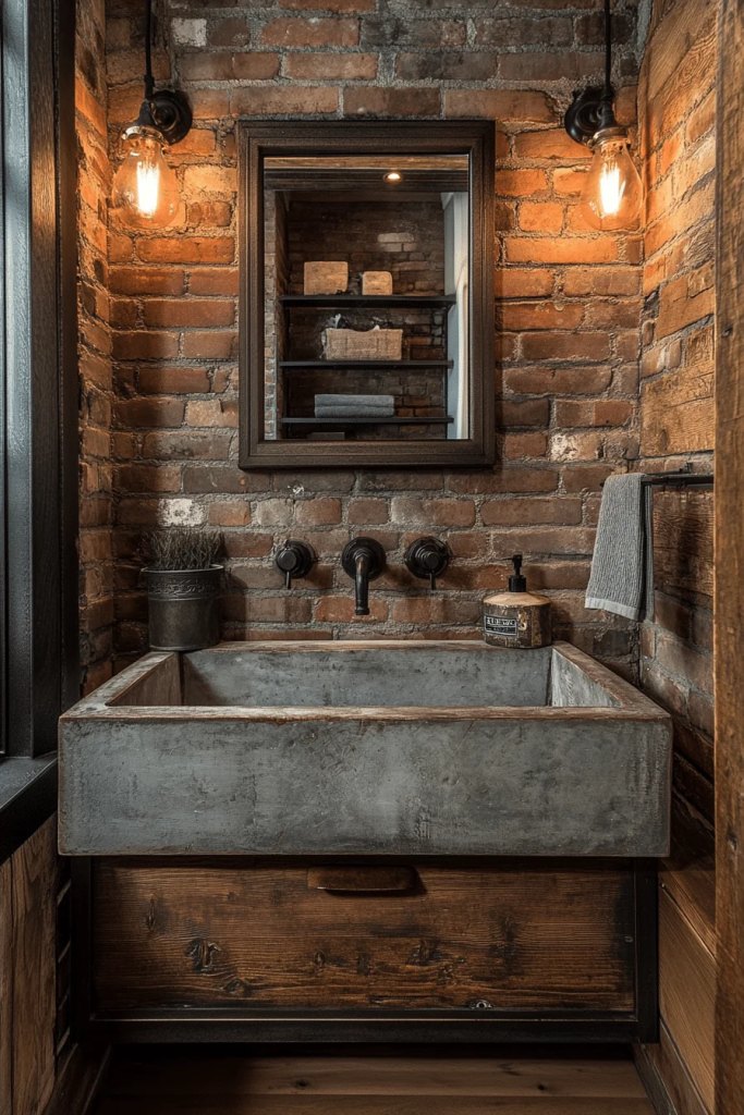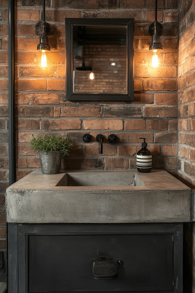 11 Industrial Bathroom with Exposed Brick WallsÂ