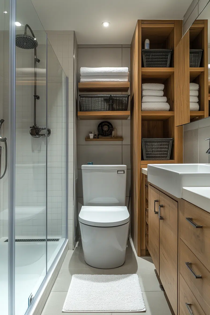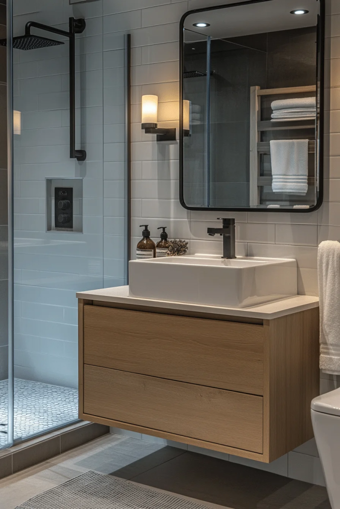 A compact industrial bathroom for small spaces utilizes smart design to maximize functionality without sacrificing style. This style incorporates space-saving fixtures and clever storage solutions, ensuring that even the smallest bathrooms can have a big impact. The use of glass and reflective metals can help to enlarge the visual space, while maintaining the minimalist and raw look of industrial decor. It’s perfect for urban dwellings where space is at a premium.
