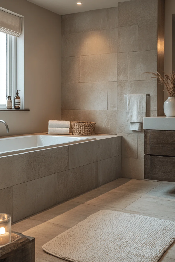 A chic industrial bathroom emphasizes concrete elements, from polished concrete flooring to cast concrete sinks. This style merges raw textures with sleek, sophisticated lines, offering a unique aesthetic that is both modern and timeless. Large wall-mounted mirrors and simple color schemes keep the space feeling open and light. Industrial fixtures and minimal accessories ensure the room remains functional and stylish.