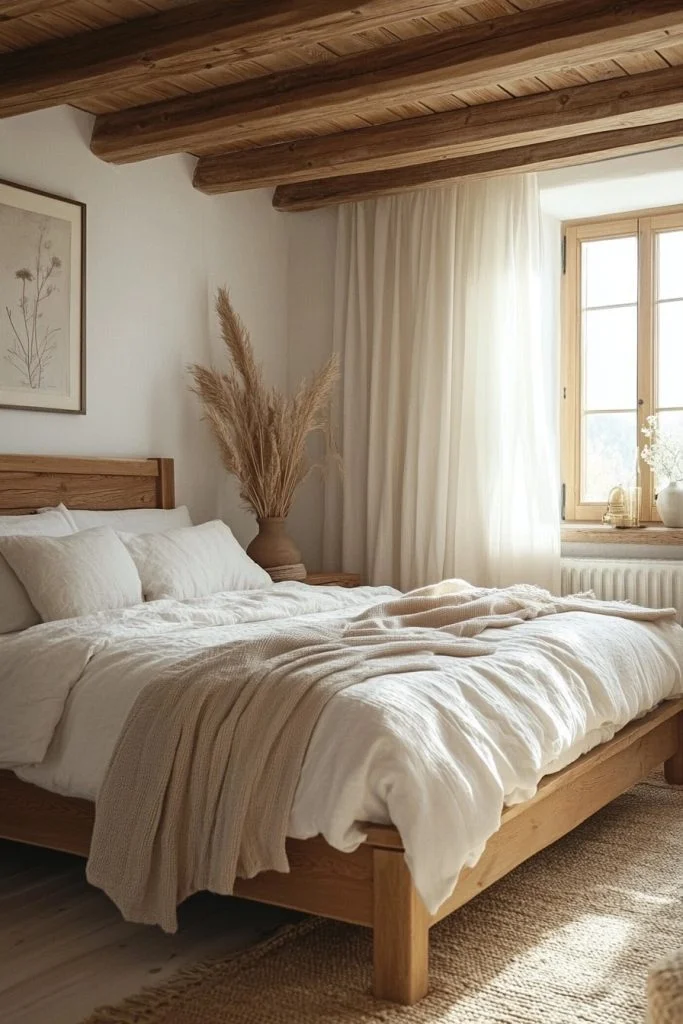 28. Rustic Bedroom with Wooden Ceiling Beams