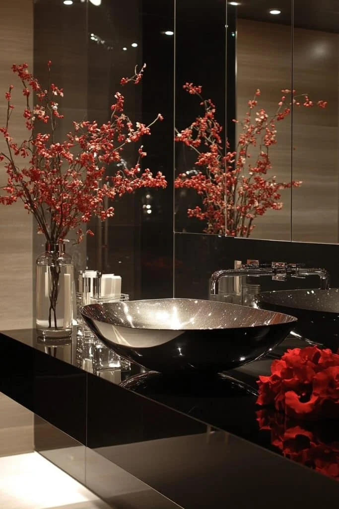High Gloss Finishes can transform a small bathroom by reflecting light and creating a perception of depth. Glossy tiles, lacquered vanities, and shiny accessories help brighten the space and make it appear larger than it is. Keeping the color palette simple allows the glossy surfaces to stand out and add visual interest. This finish is particularly effective in modern and contemporary designs.