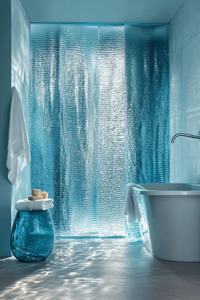 Oceanic Blue Oasis incorporates various shades of blue to create a serene aesthetic. Mosaic tiles in aquamarine or navy can be used for a feature wall or niche. The color blue is known for its calming effects, making it ideal for a bathroom setting. Complementary colors like sandy beiges or whites balance the blue and enhance the lightness of the space.