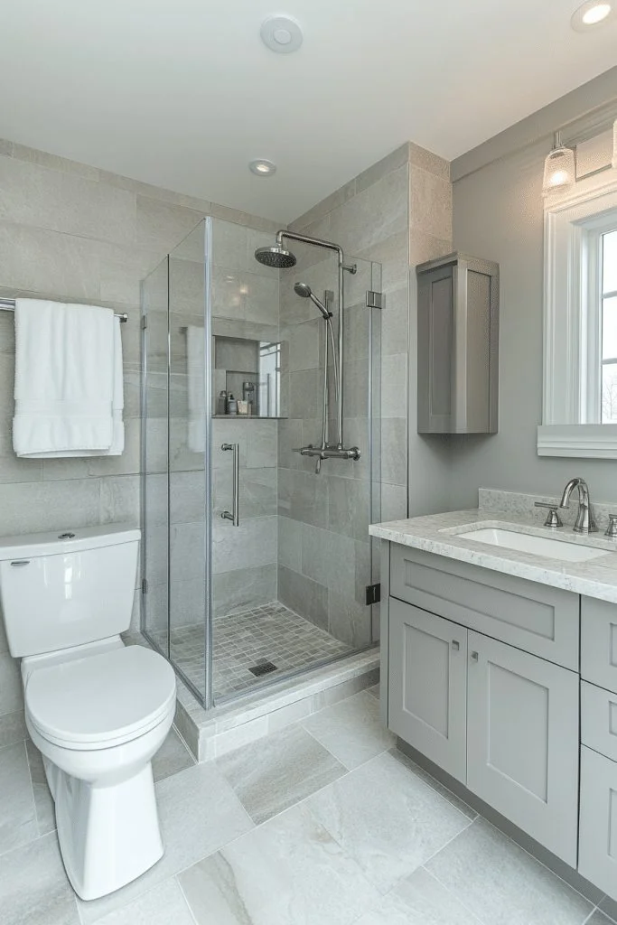 Matte Finish Elegance offers a sophisticated and contemporary look. Matte surfaces such as countertops, tiles, and fixtures provide a modern touch without the glare of glossy finishes. This helps in creating a soothing atmosphere that feels both chic and understated. Use a consistent matte finish to unify the space and avoid visual clutter.