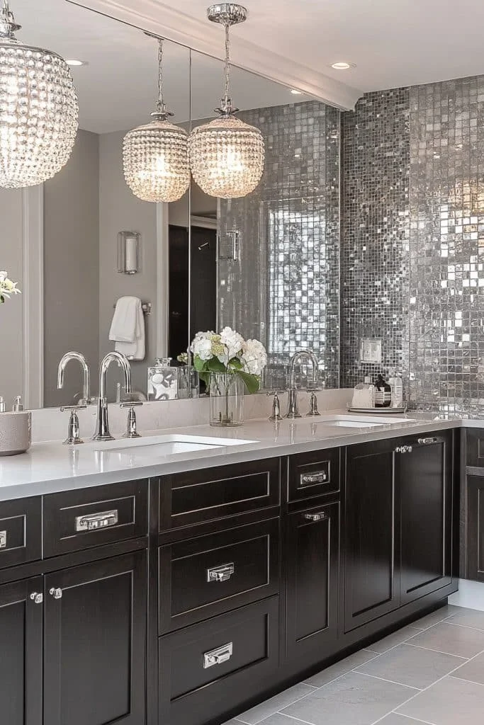 Mirrored Wall Illusions can dramatically increase the perceived size of a small bathroom. By installing a large, wall-to-wall mirror above the vanity, the space is visually doubled. Mirrors reflect light around the room, adding brightness and depth. This approach is particularly effective in narrow bathrooms or windowless powder rooms.