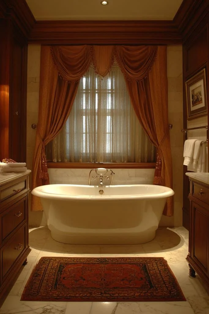 Art Deco Inspiration brings glamour and sophistication with its characteristic geometric shapes and metallic finishes. Use elements like fan-shaped tiles, brass fixtures, and mirrored surfaces to embody this luxurious style. The Art Deco theme can make even a small bathroom feel like a lavish retreat. Coordinate colors and materials for a cohesive and elegant look.