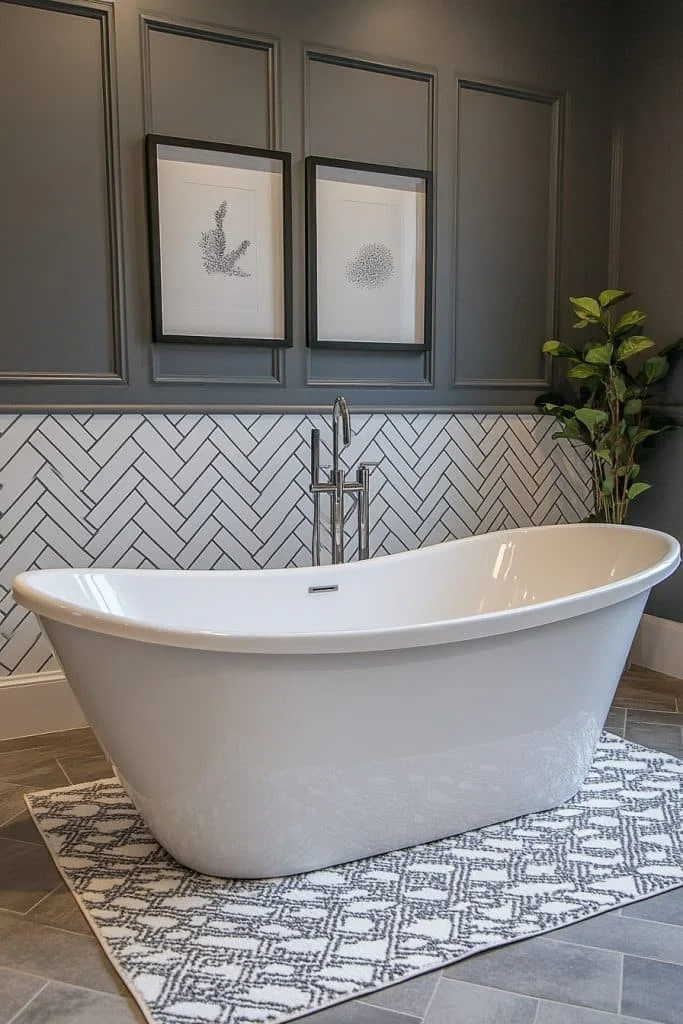 Bright Whites and Deep Blacks offer a clean and sharp look, using stark contrasts to create a visually striking space. This color scheme is effective in making small areas appear larger and more open. Use white for walls and fixtures to maximize light reflection, with deep blacks for accents like grout or accessories. This approach is perfect for those who prefer a bold yet simple aesthetic.