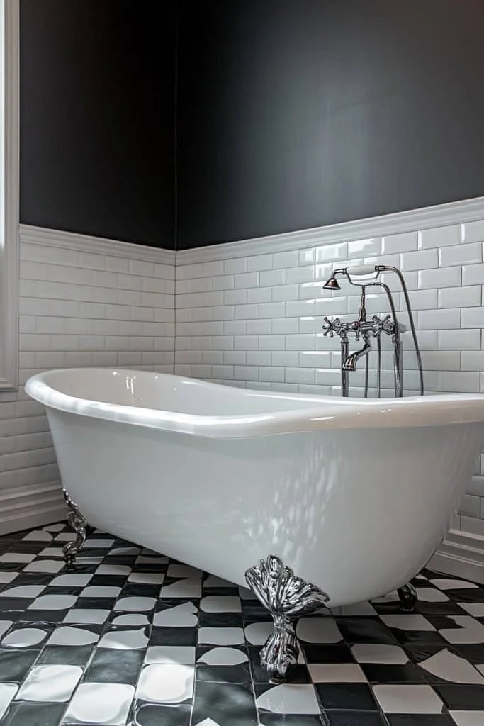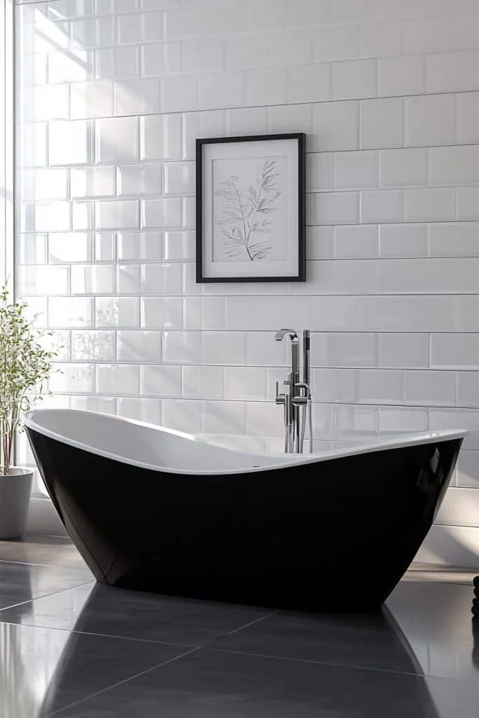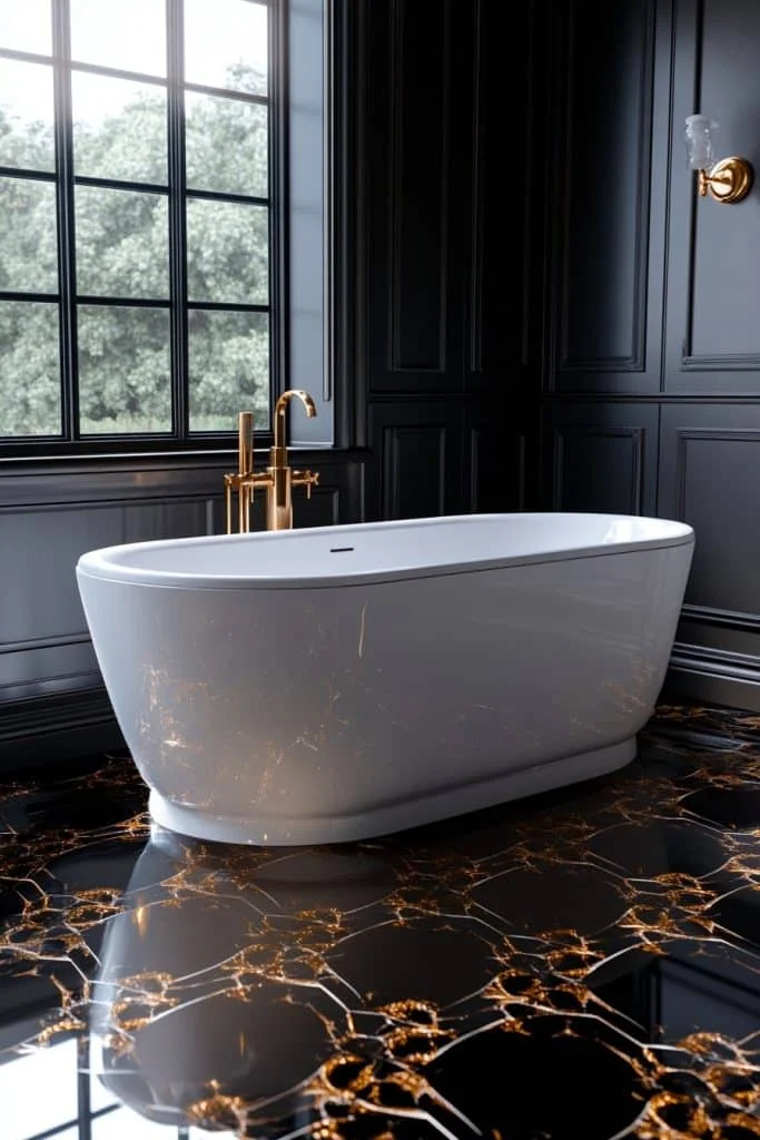 An Art Deco inspired tub space can add a touch of vintage glamour. Use black and white geometric floor tiles and metallic finishes like brass or gold to bring the style to life. Opt for a classic white tub with black exterior paint to keep the space feeling elegant. This style works well with symmetrical designs and streamlined fixtures.