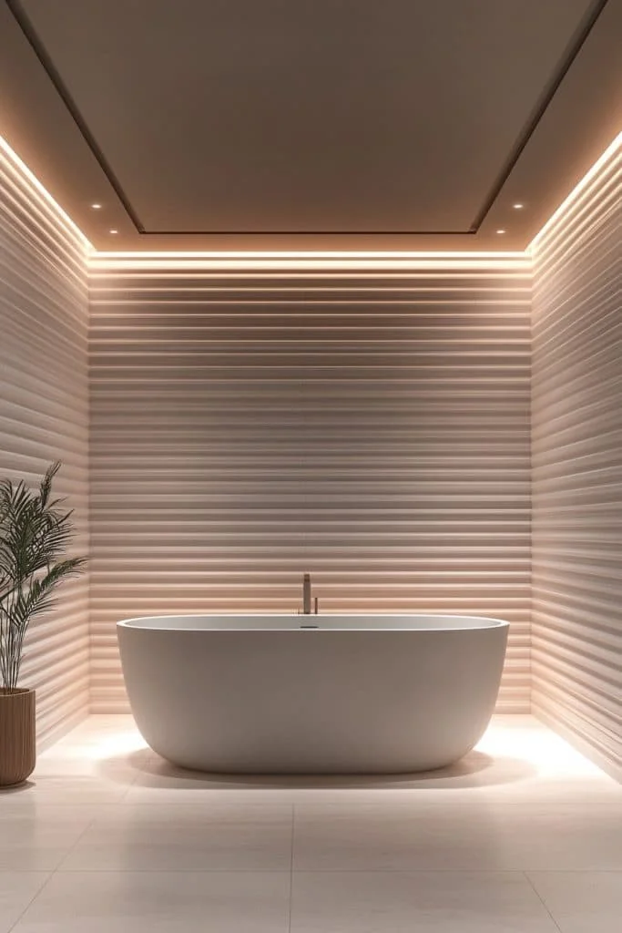 Designing a luxurious limestone tub nook can add texture and warmth. Limestone tiles in soft beige or grey can be used on the walls and tub surround for a cohesive look that feels organic. The soft color palette helps to keep the space feeling light. Pair this with muted lighting and simple, elegant fixtures in brushed nickel to maintain a tranquil atmosphere.