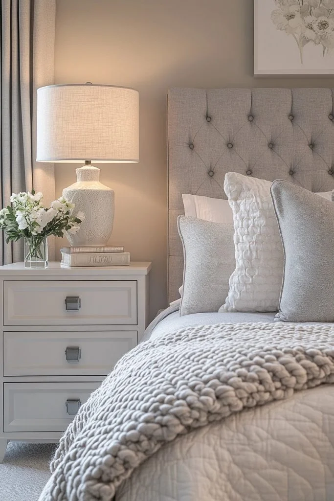 The Minimalist Mono Luxe style is perfect for a tiny bedroom aesthetic, emphasizing luxurious simplicity through a monochromatic color scheme. This decor utilizes various shades of the same color to create depth and visual interest without overwhelming the small space. Sleek, high-quality materials like satin or chrome add a touch of luxury, while minimalist furniture keeps the area open and uncluttered. Strategic lighting highlights the rich textures and clean lines, making the bedroom feel larger than it is.