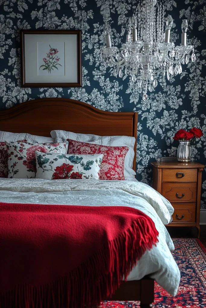 Art Deco Delight brings the glamour and symmetry of the Art Deco period to a tiny bedroom aesthetic, featuring bold geometric patterns and metallic accents. This style makes a luxurious statement in a small space, using rich colors like navy, black, or emerald, complemented by shiny brass or gold details. The use of mirrors and reflective materials not only adds to the deco charm but also helps to visually expand the area. Keep the layout simple and symmetrical to maintain a clean and organized feel.