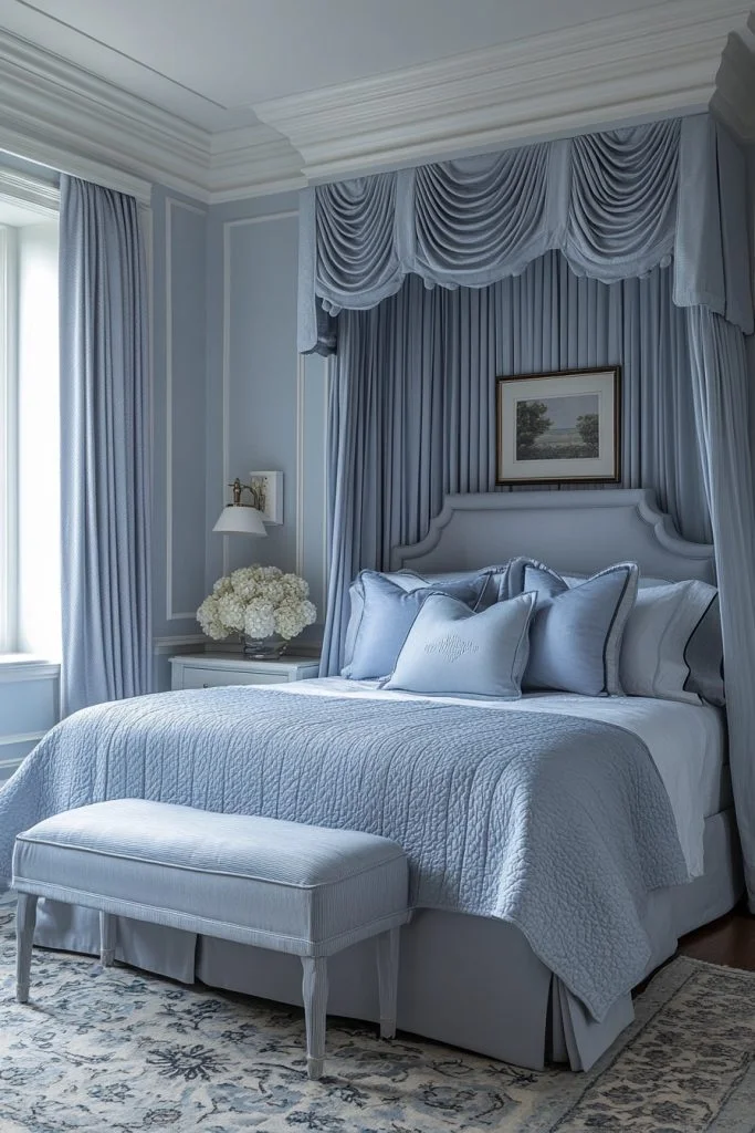 Small Space High Style maximizes a tiny bedroom’s aesthetic potential by incorporating chic, high-end materials and smart layouts. Luxurious fabrics, sleek furniture, and clever built-in storage solutions ensure that every inch of the room is both stylish and functional. The use of vertical space for storage and bold artistic elements can draw the eye upwards, making the room feel larger. This design is ideal for urban dwellers who want to make a small space feel grand.