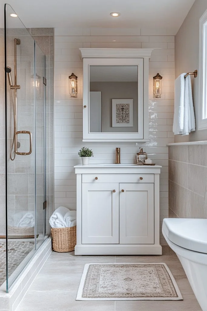 Subway tiles are a versatile choice, offering a clean and timeless look. These tiles work well in a classic brick pattern or laid in a herringbone or vertical stack for a twist. Pairing white subway tiles with dark grout highlights the architectural details and adds depth. Period-appropriate accents like a console sink or ornate mirrors complete the Victorian look.